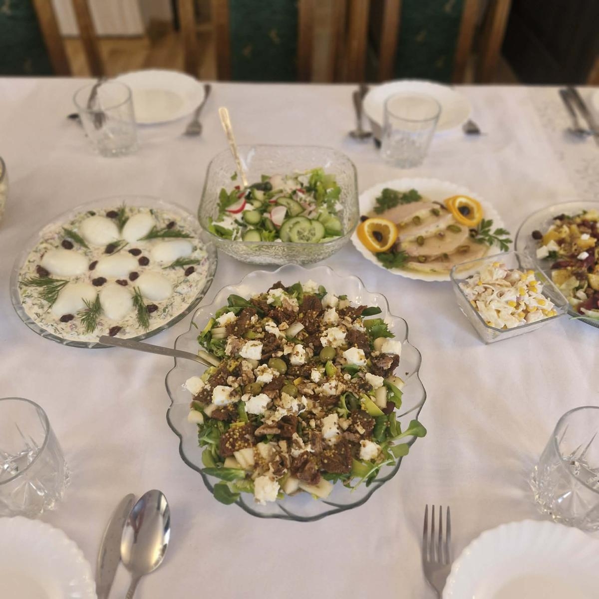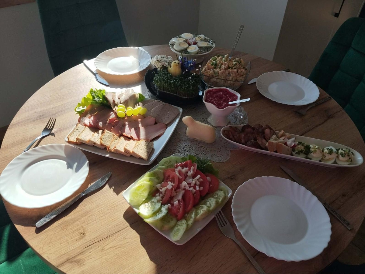 Oprócz słodkości tradycyjnie baranek z masła, swojski chrzan, galantyny, pasztety, domowe wędliny, sałatki i jajka wykonane w różnych wariantach. Wszystko z sercem przygotowane przez członkinie KGW Kulesianki.