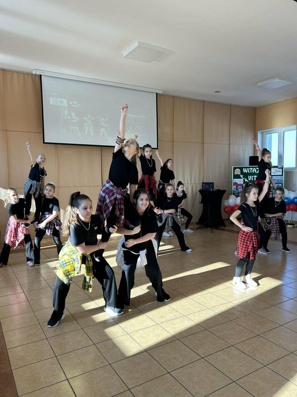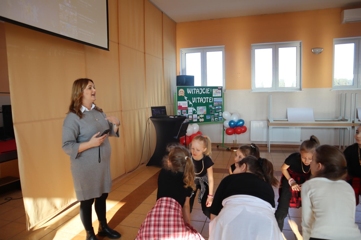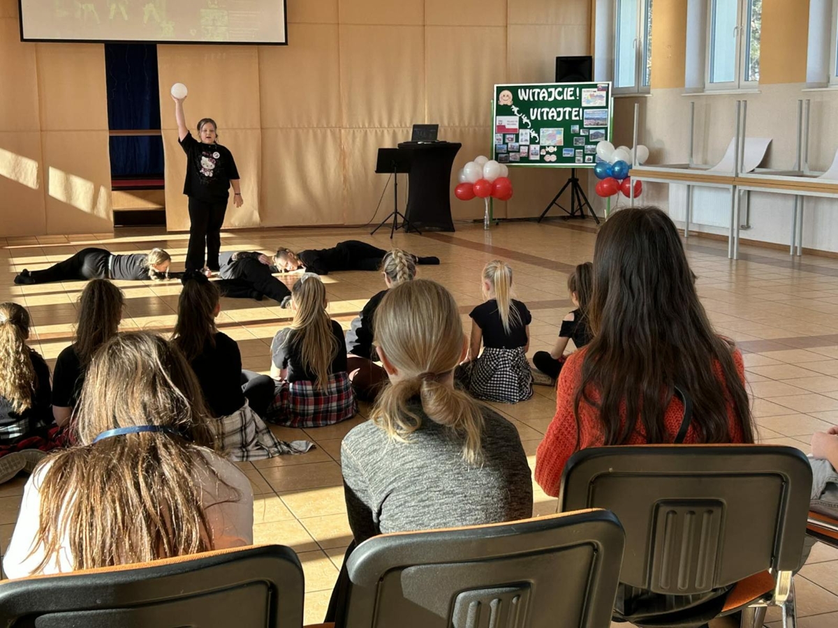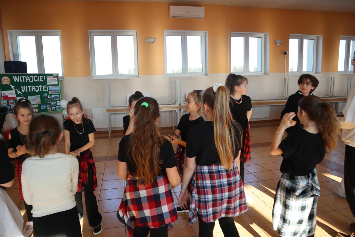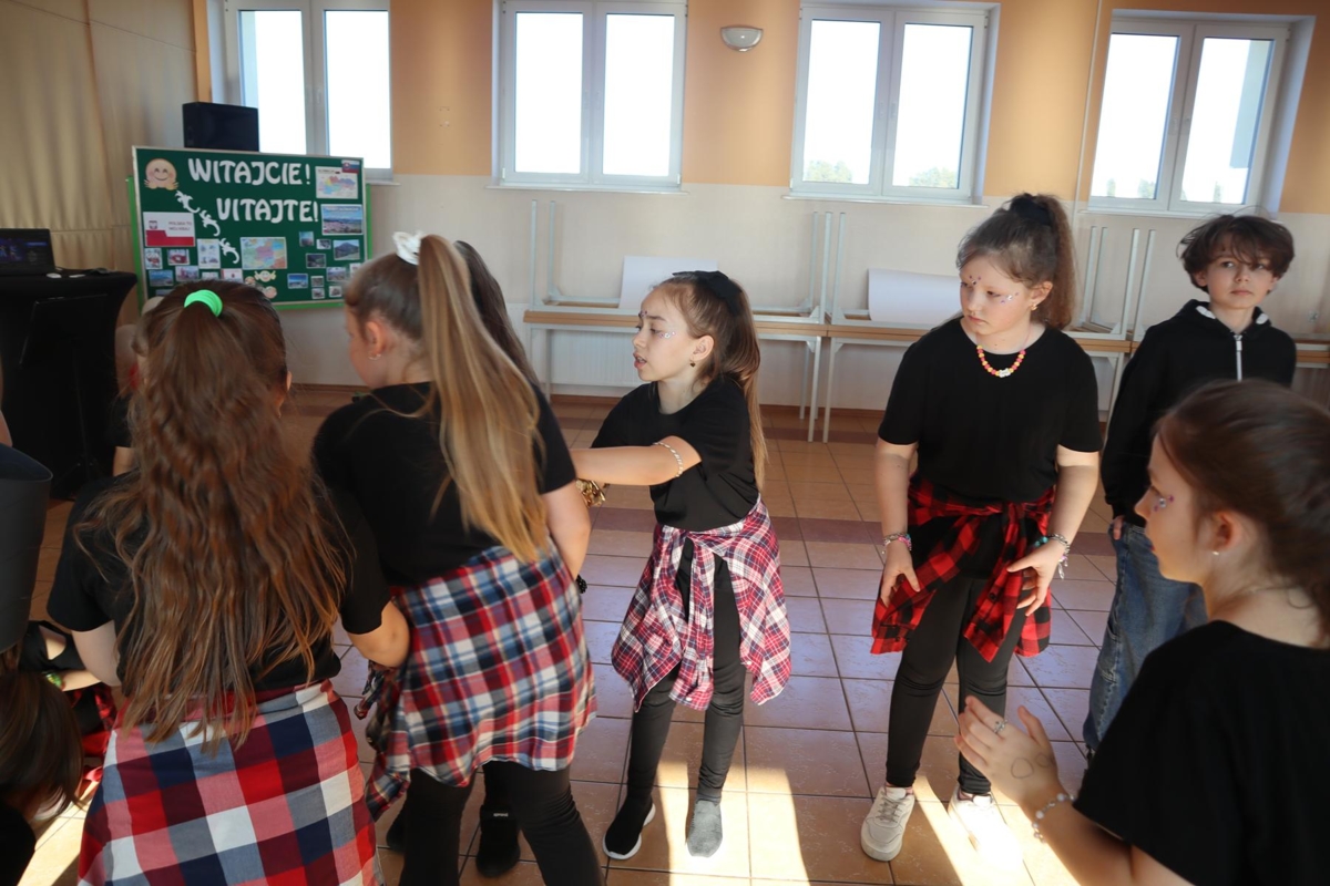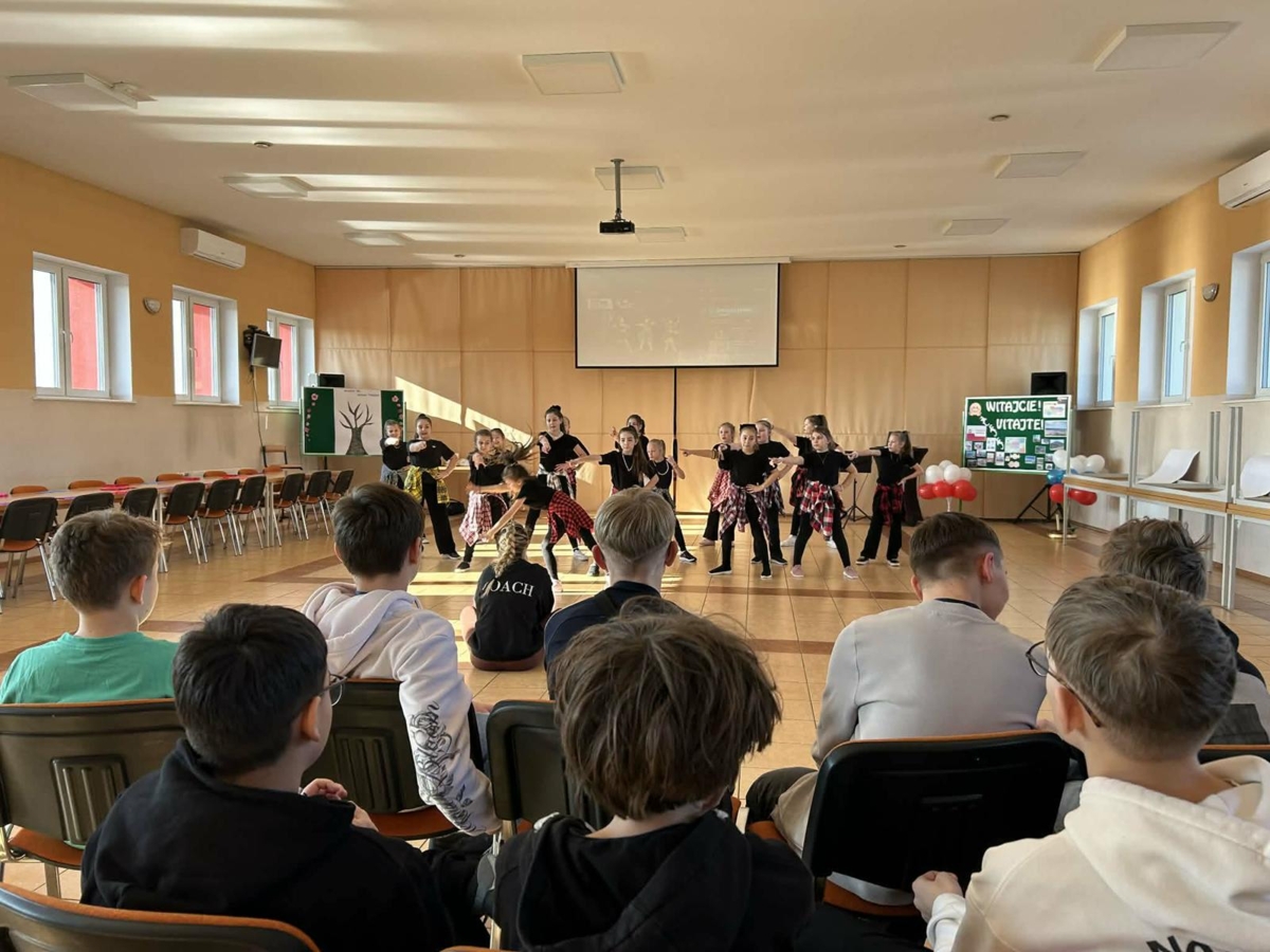 Pierwszy dzień pobytu gości wypełniły liczne atrakcje. Po oficjalnym powitaniu przez dyrekcję, uczniowie zaprezentowali program artystyczny, w tym wiersze po angielsku i specjalnie napisaną piosenkę. Regionalny akcent zapewniły dzieci z oddziału przedszkolnego, które wystąpiły z tańcami ludowymi. Edukacyjną część dnia stanowiła gra terenowa dotycząca praw obywatelskich, w której międzynarodowe zespoły rywalizowały w budynku szkoły, zdobywając nagrody ufundowane przez Krajowe Biuro eTwinning.