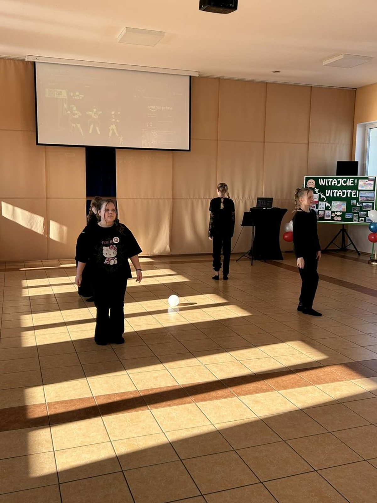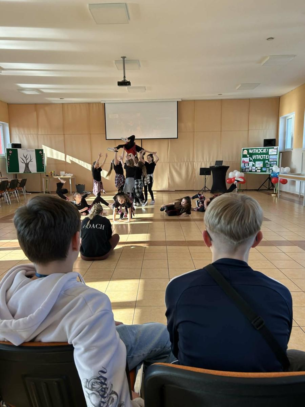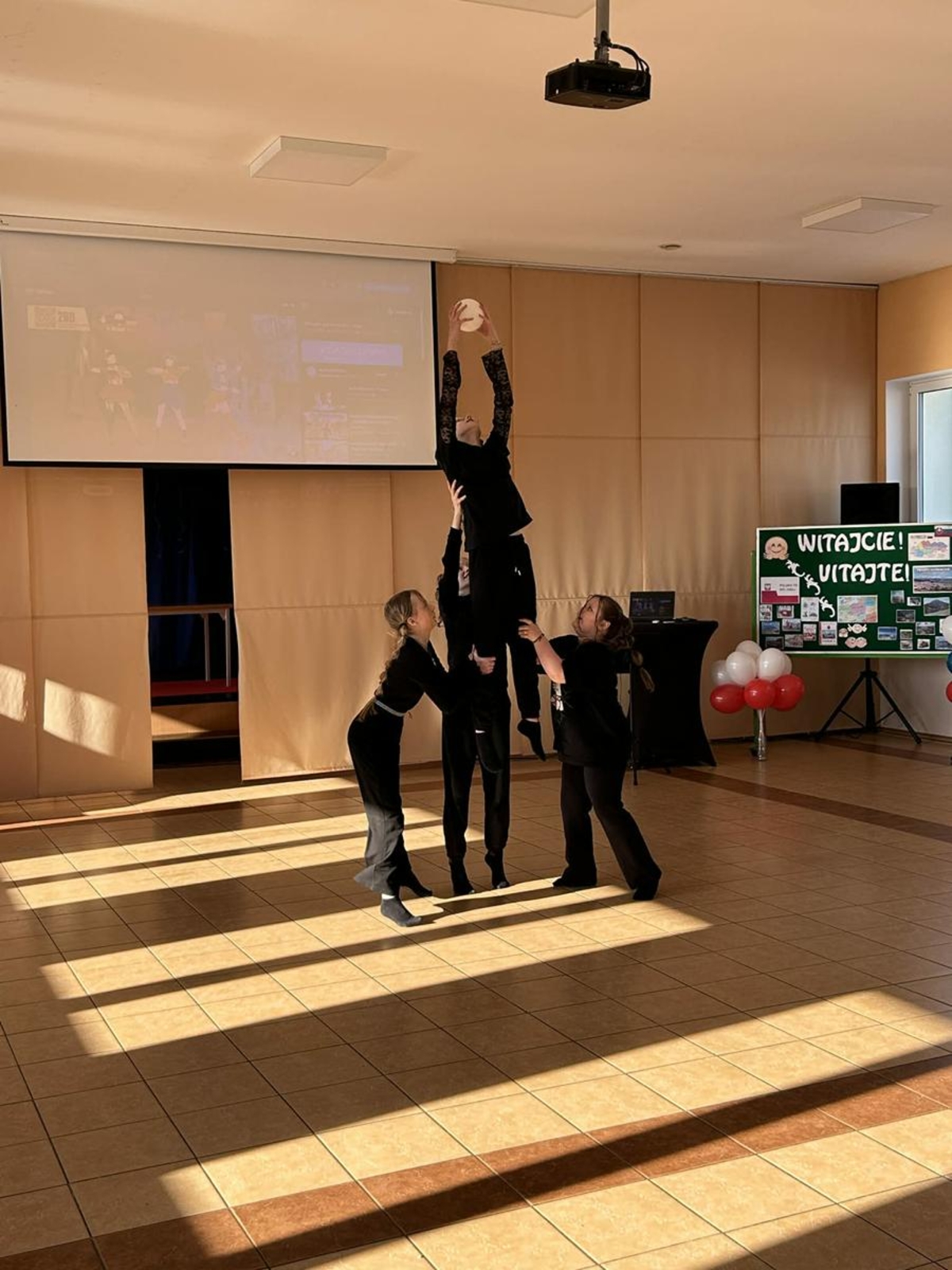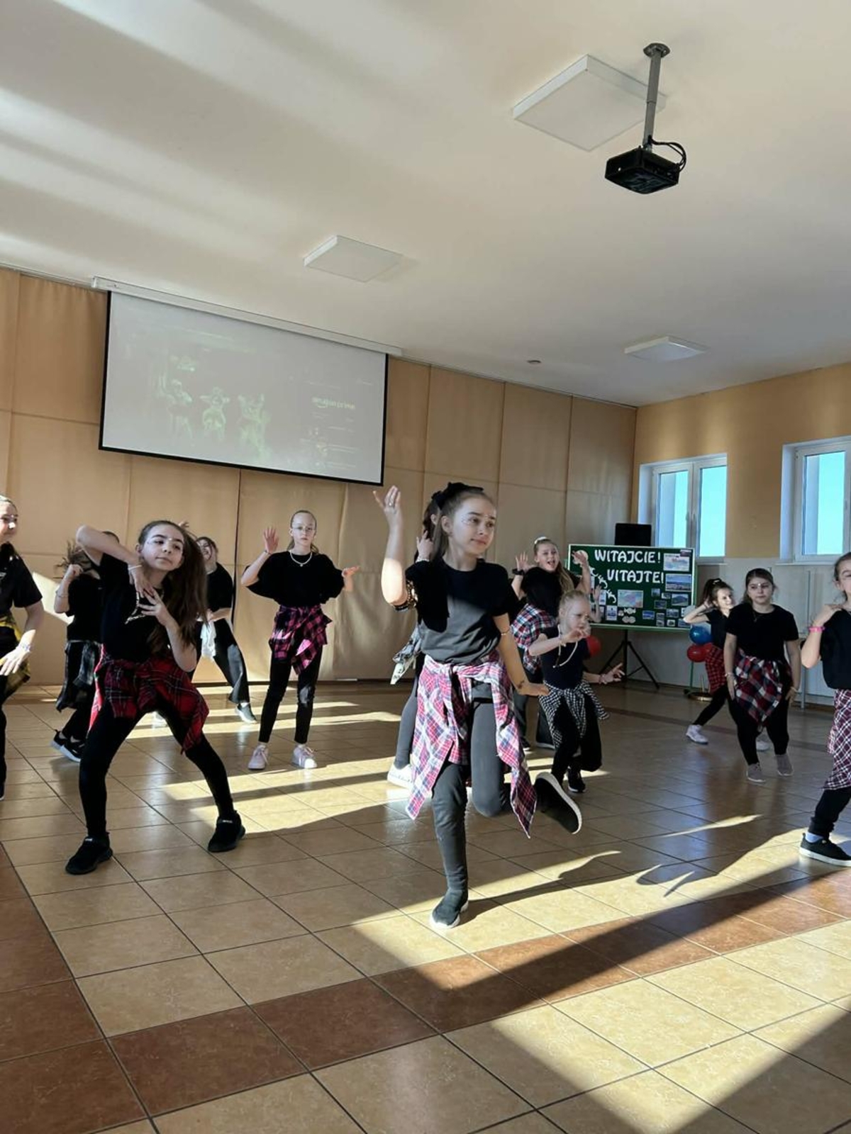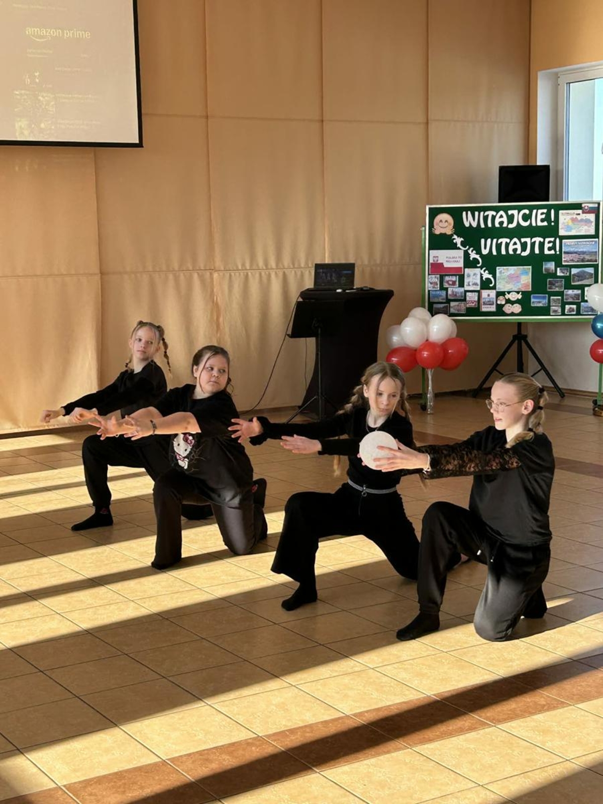 Pierwszy dzień pobytu gości wypełniły liczne atrakcje. Po oficjalnym powitaniu przez dyrekcję, uczniowie zaprezentowali program artystyczny, w tym wiersze po angielsku i specjalnie napisaną piosenkę. Regionalny akcent zapewniły dzieci z oddziału przedszkolnego, które wystąpiły z tańcami ludowymi. Edukacyjną część dnia stanowiła gra terenowa dotycząca praw obywatelskich, w której międzynarodowe zespoły rywalizowały w budynku szkoły, zdobywając nagrody ufundowane przez Krajowe Biuro eTwinning.