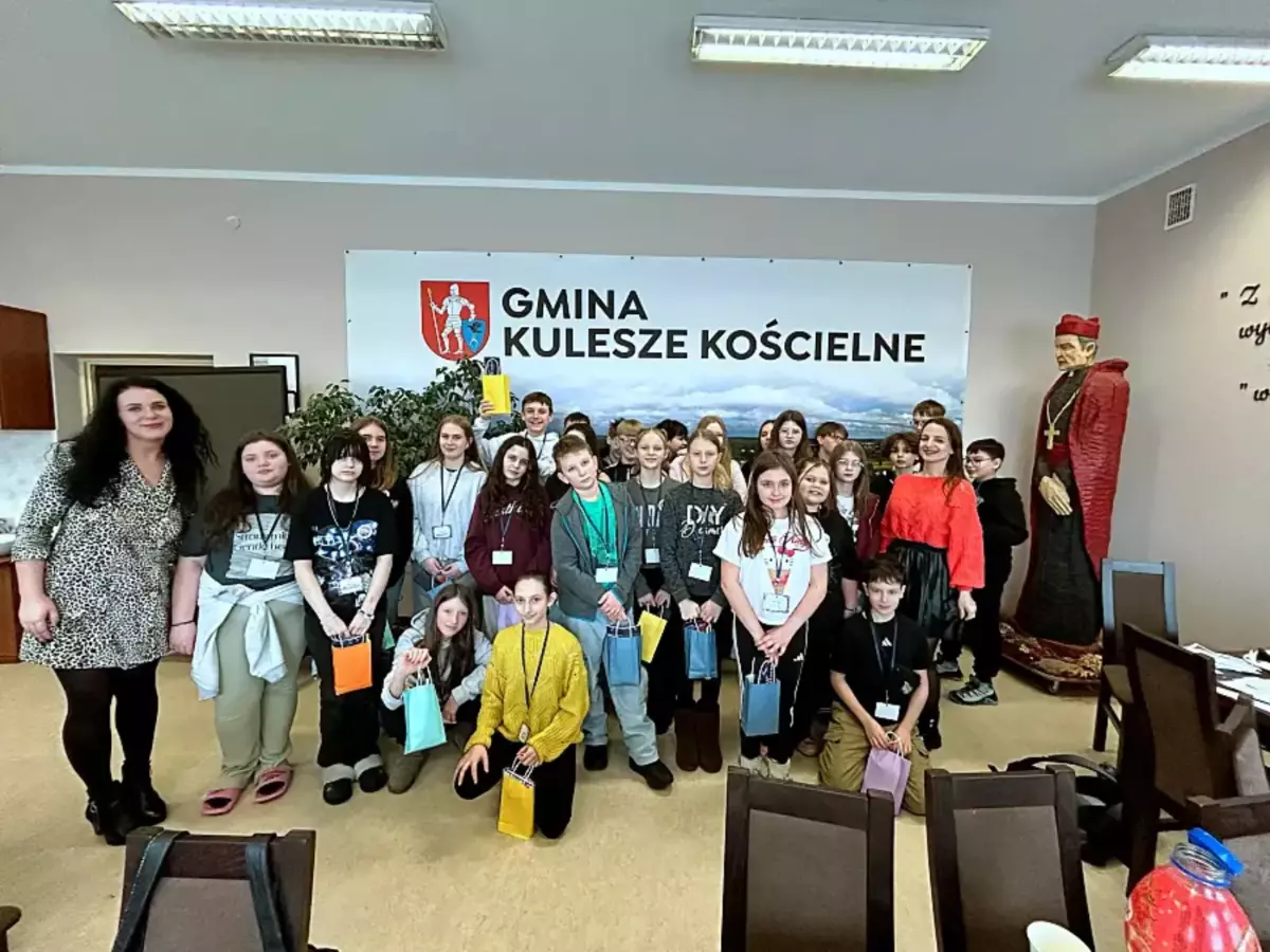Młodzież odwiedziła również kluczowe miejsca w gminie. W Urzędzie Gminy spotkali się z wójtem Stefanem Grodzkim, który przybliżył im zasady działania samorządu. Goście zwiedzili także zabytkowy kościół parafialny pod wezwaniem świętego Bartłomieja.