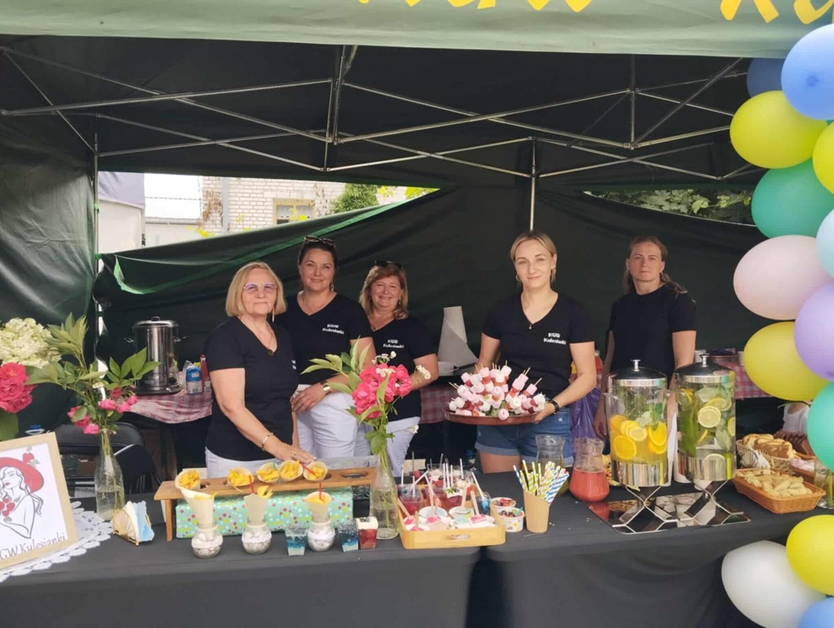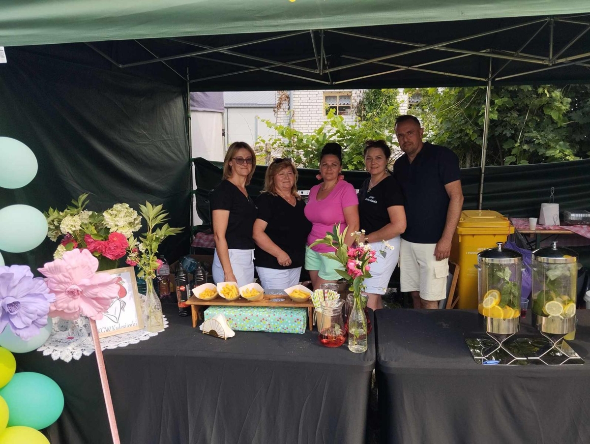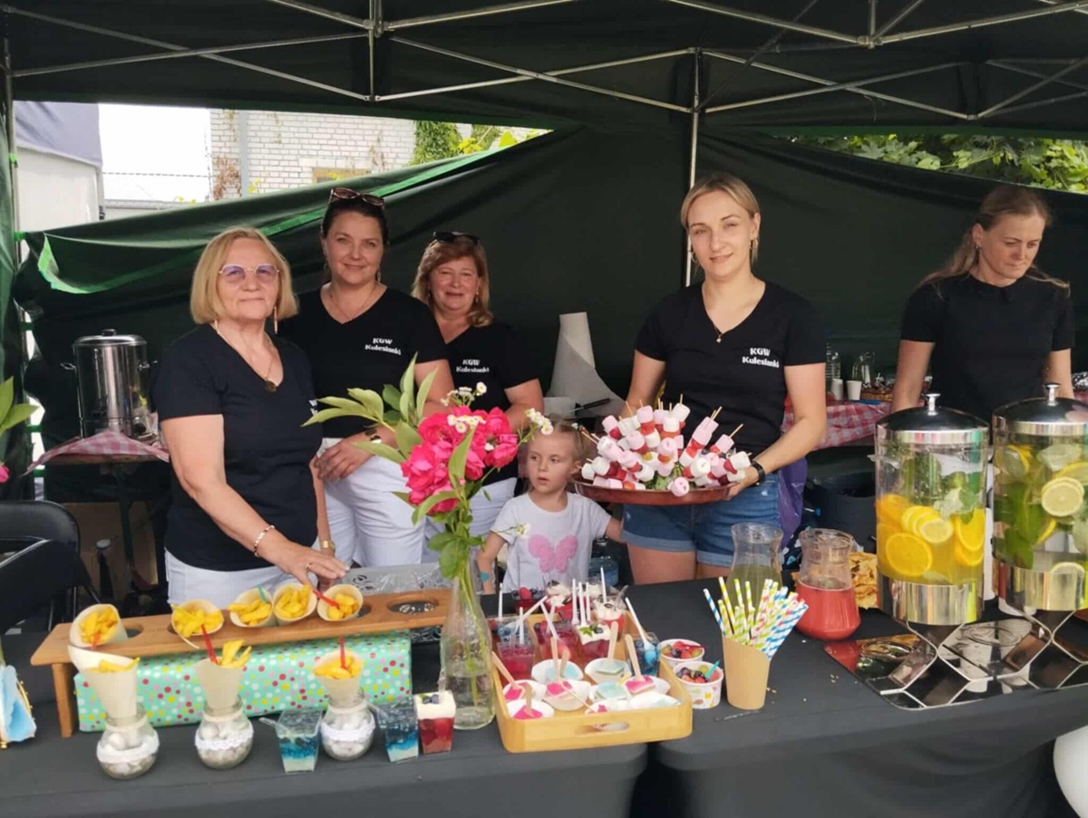 Nie zabrakło również czegoś pysznego! Koło Gospodyń Wiejskich „Kulesianki” przygotowało orzeźwiające lemoniady oraz chrupiące, gorące frytki, które cieszyły się ogromnym powodzeniem zarówno wśród dzieci, jak i dorosłych. Panie przez całe wydarzenie czuwały nad namiotem ze słodkim poczęstunkiem przygotowanym przez rodziców dzieci uczestniczących w zajęciach w CKE w Kuleszach Kościelnych- Z całego serca dziękujemy.