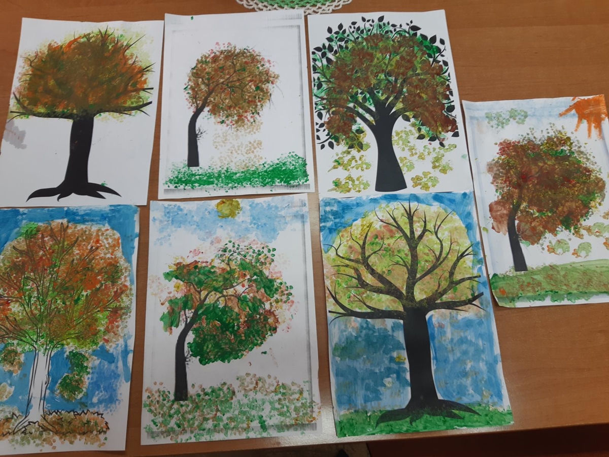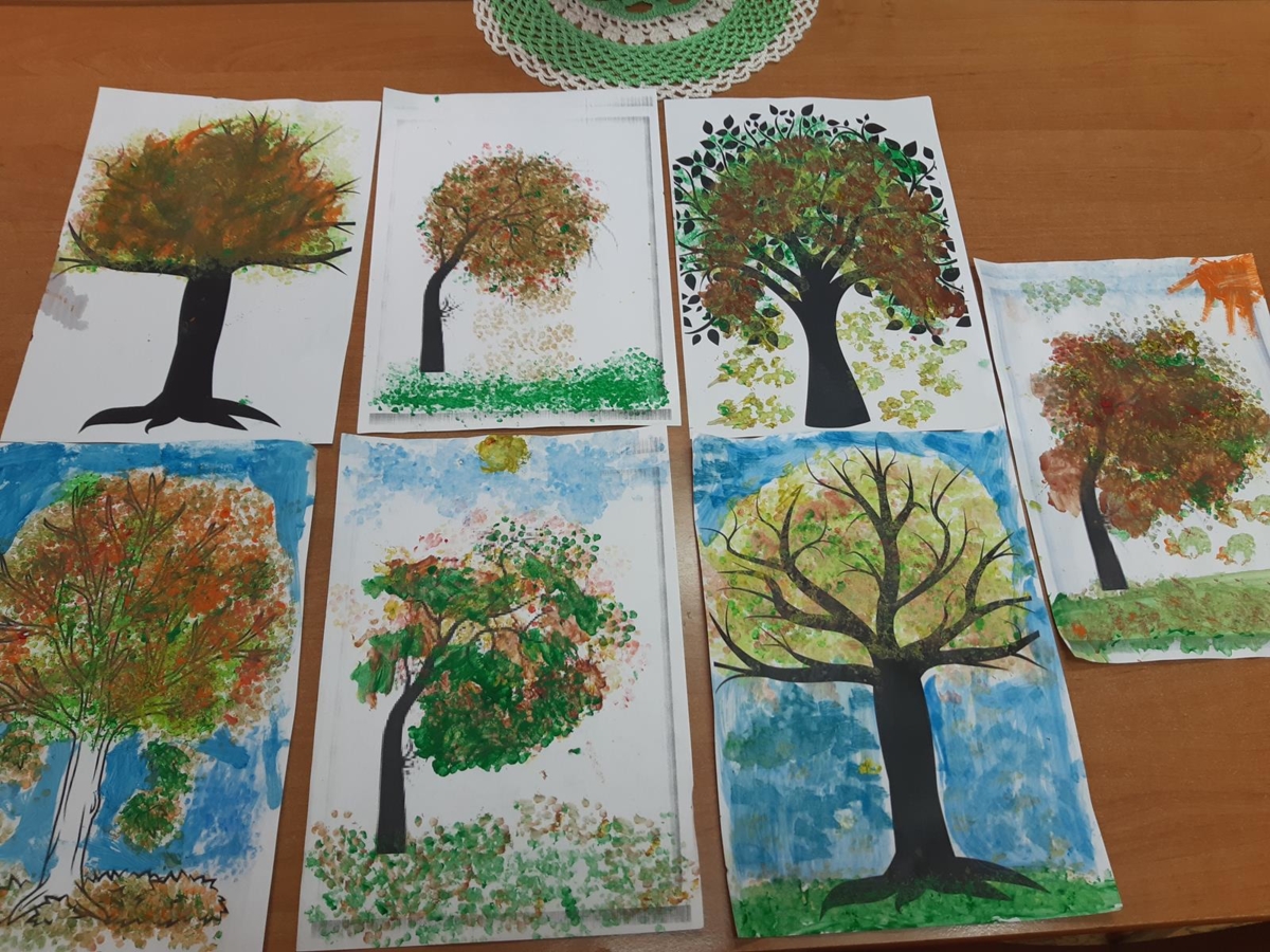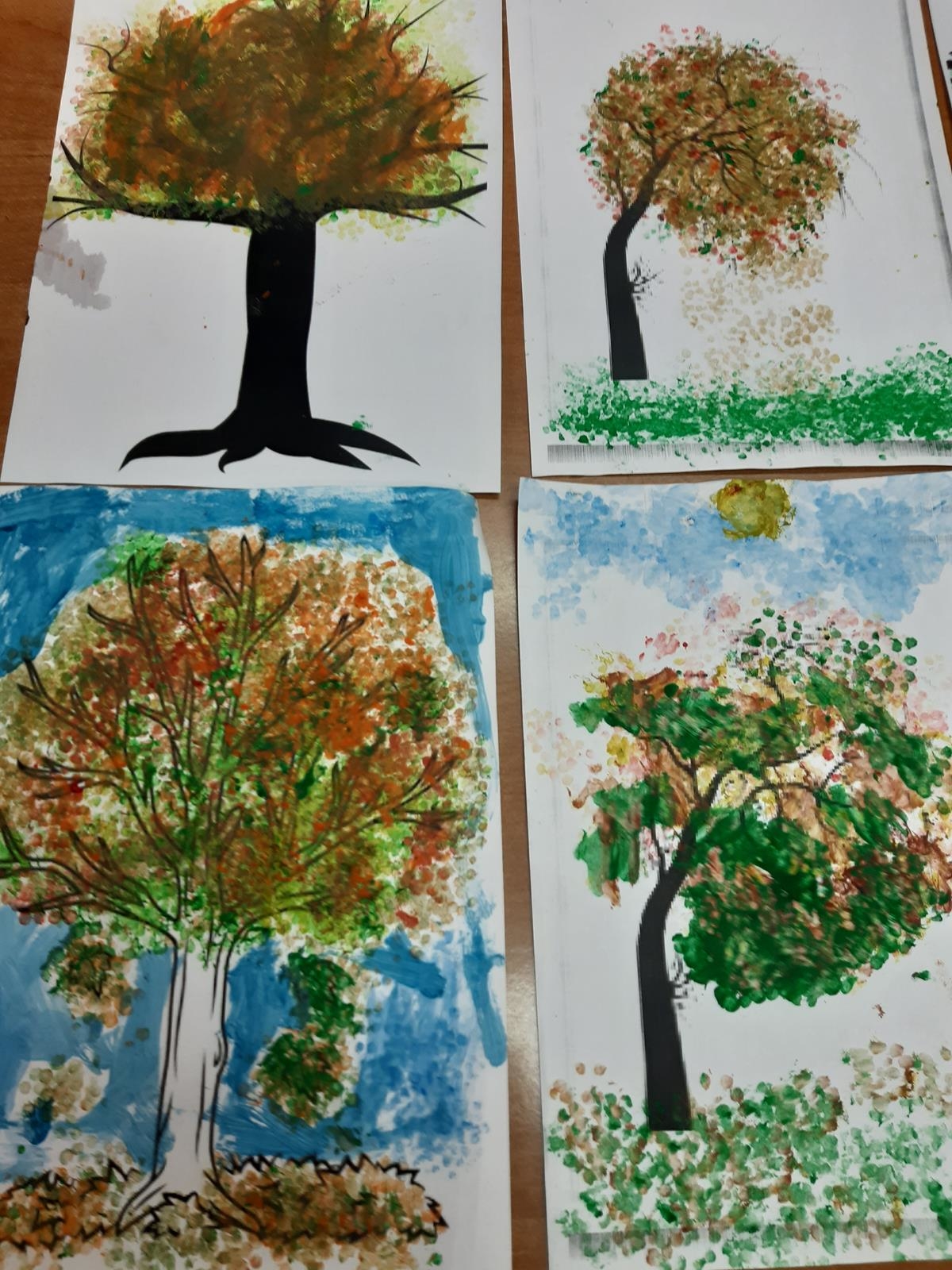 Jesień to kolorowe drzewa, liście, kasztany i żołędzie to tak wdzięczny temat na nasze zajęcia.Na dzisiejszych zajęciach naszą inspiracją były przepięknie wyglądające drzewa na zewnątrz i ich barwne, kolorowe liście. Razem z dziećmi stworzyliśmy takie jesienne drzewka i fajnie przy tym się bawiliśmy. To pomysł na malowanie farbami, ale w innej wersji. Pokazałam też dzieciom, że do malowania farbami można wykorzystać nie tylko pędzelek, ale również palce, widelec czy też malowanie patyczkami kosmetycznymi. Dzieci bardzo chętnie podjęły wyzwanie i za pomocą patyczków namalowały wyjątkowe jesienne drzewa.